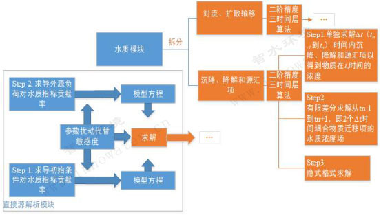 基于三維水動力-水質(zhì)模型的二次開發(fā),將污染源、水質(zhì)變量及水動力過程耦合聯(lián)立,高效、準(zhǔn)確獲取所有污染源對水體中任一時間、任一空間點(diǎn)位的水質(zhì)直接貢獻(xiàn),為實現(xiàn)水質(zhì)達(dá)標(biāo)方案識別和流域精準(zhǔn)治污提供了強(qiáng)大的決策支持技術(shù)。