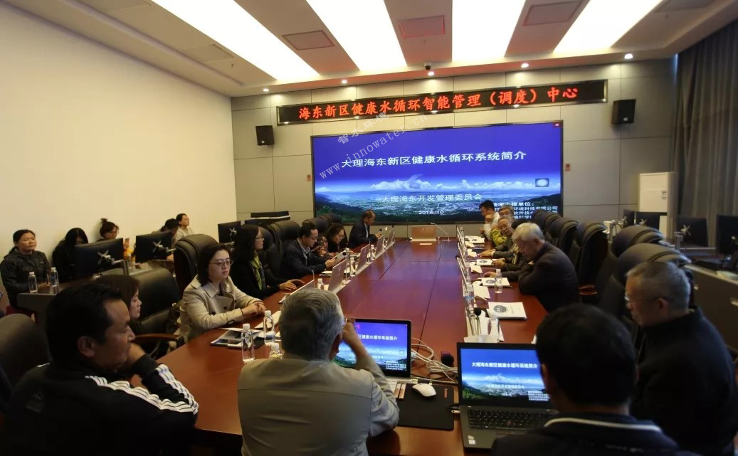 調(diào)研組聽取了海開委總工程師尚榆民和南京智水環(huán)境科技有限公司關(guān)于健康水循環(huán)調(diào)度系統(tǒng)的報告,報告包含健康水循環(huán)系統(tǒng)的理念、建設(shè)實施以及調(diào)度系統(tǒng)的建設(shè)等內(nèi)容,并進行了調(diào)度系統(tǒng)展示。